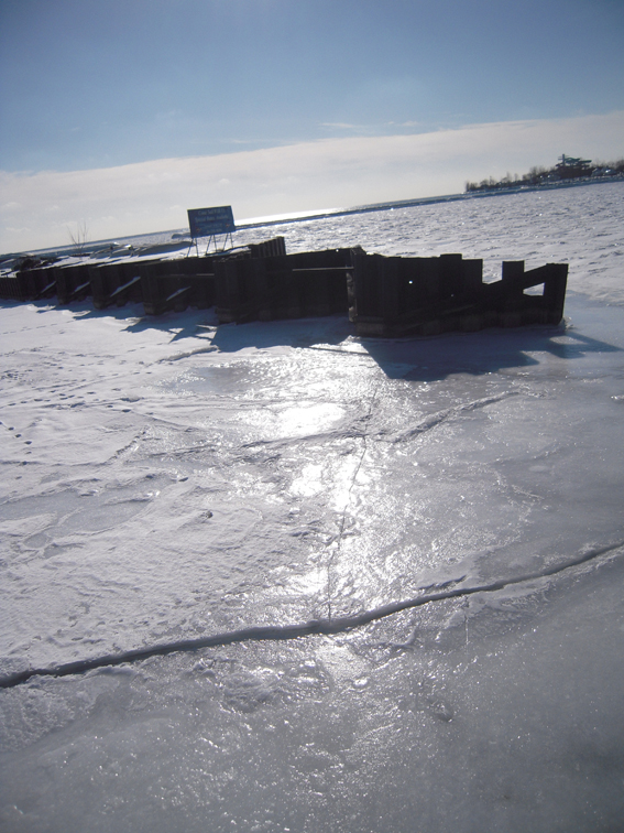 Yesterday I took a walk around the lake, and I found the lake was icy!!! Actually I hadn't expected such a scenery. It's marvelous! And especially the squeaky sound of the ice on the lake was fantastic! I was really impressed by that sound, 'cause it was my first time to experience such a natural, powerful, and fine sound.